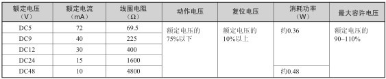 备注:上述特性基于环境温度23℃下测量,线圈电阻公差为±10%