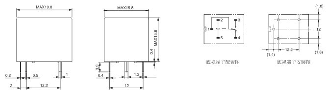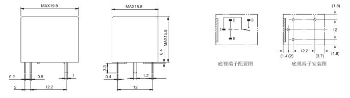 ● 带普通引线端子的小型 \"糖块\"式继电器