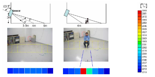 右下方的图表示根据4x4 元件的16 种温度输出计算得出的热图像实例。