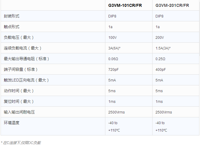 G3VM-201CR/FR:1.5A(A连接), 3A(C连接)