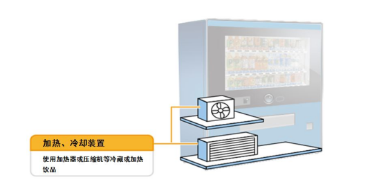 继电器是指通过开关等接收电信号,进行电路开闭及切换的零部件。在自动售货机中,继电器用来控制加热饮品的加热器和冷藏饮品的压缩机内电流的开闭。由此便可在一台自动售货机内实现加热或冷藏饮品的功能。